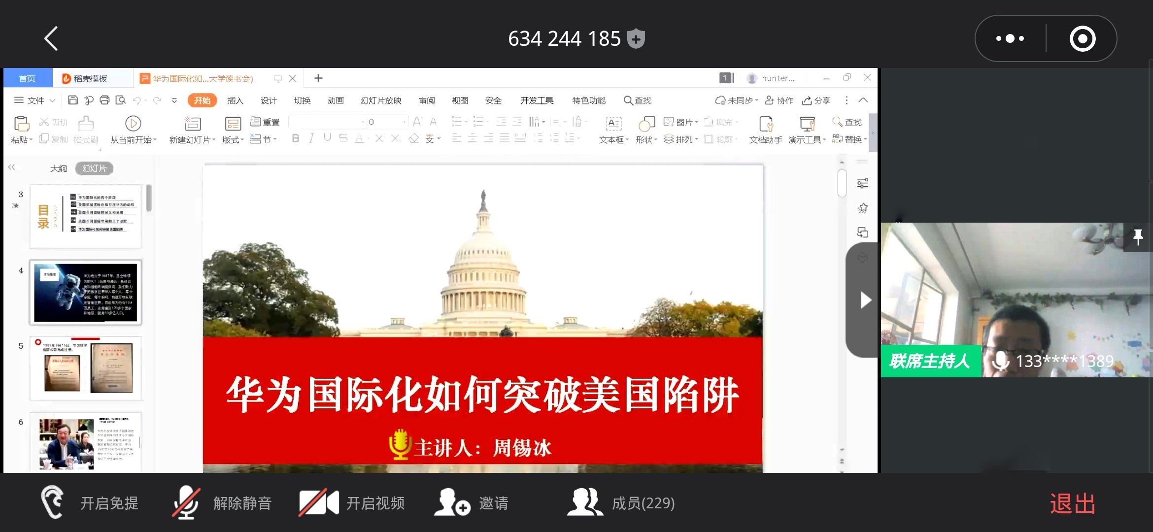 6月16日下午,9778818威尼斯和浙江大学公共外交与战略传播研究中心共同举办了一场云讲座。讲座邀请了华为研究专家、财经作家周锡冰老师,以“华为国际化如何突破美国陷阱”为主题。此次讲座是9778818威尼斯成立以来进行的首次云讲座,讲座由9778818威尼斯副院长王军伟主持,本学院和浙江大学部分师生,共计200多名共同参加。