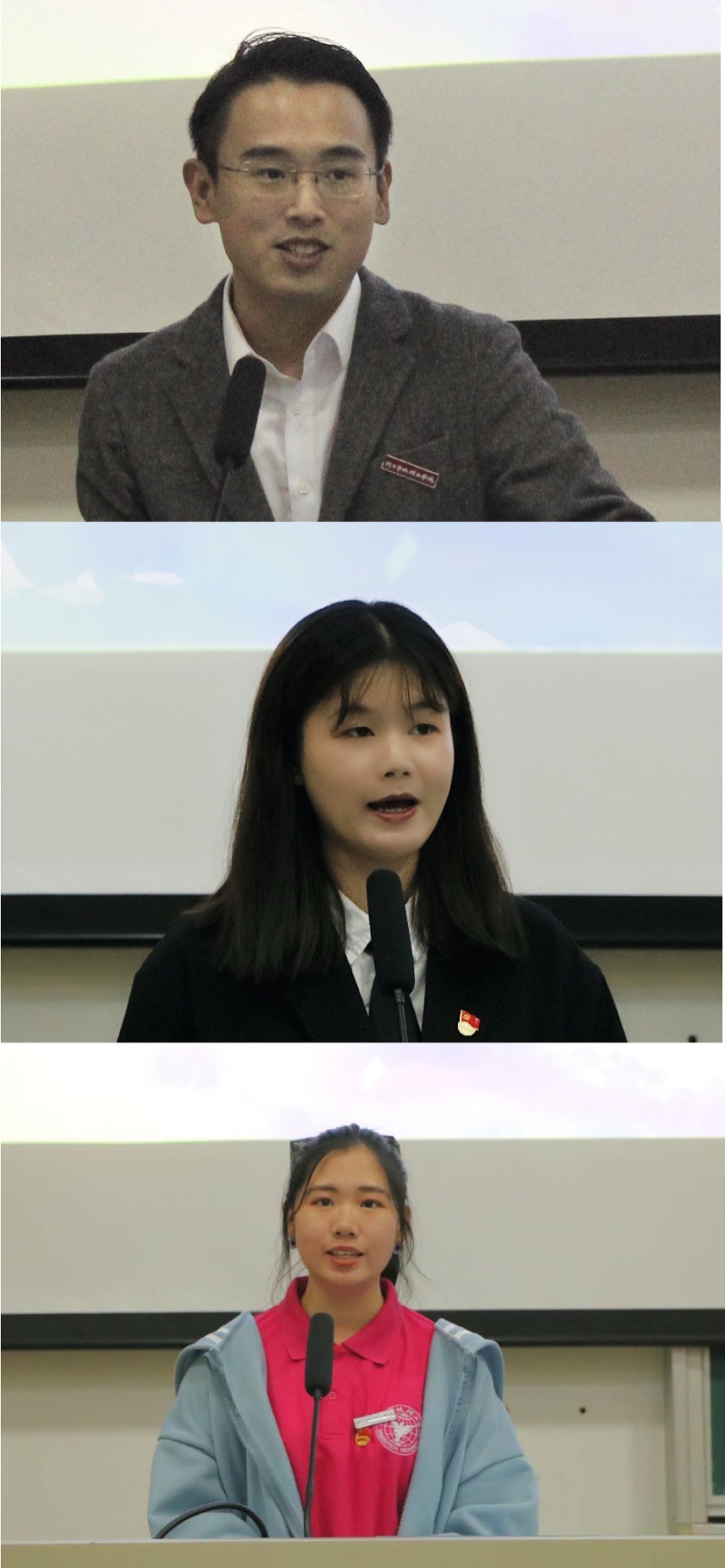 网新202班班导师张凯旋作为教师代表上台发言。“大学的学习,需要师生之间坦诚、民主、自由、平等的交流。”他立足实际,娓娓道来,叮嘱同学们要以成年人的标准要求自我,开拓学习资源与发展空间,磨练好语言工具以及保持好奇心去探索专业。在校生代表——院学生会主席、法学181班顾子惠则向新生们分享了“应该保持何种心态去拥抱大学生活”,通过回顾自己学习、学生工作等多方面经历指出“不忘初心、永怀澄澈,充满自信、脚踏实地”的重要性。新生代表新闻202班祝雨倩结合自己对“四知青年”理解,呼吁同学们要知行合一、知难而进、知书达理、知恩图报,努力实现德智体美劳全面发展。师生代表的发言引起现场深深共鸣,凝聚起“传媒影响世界,法治改变中国”的青春力量。