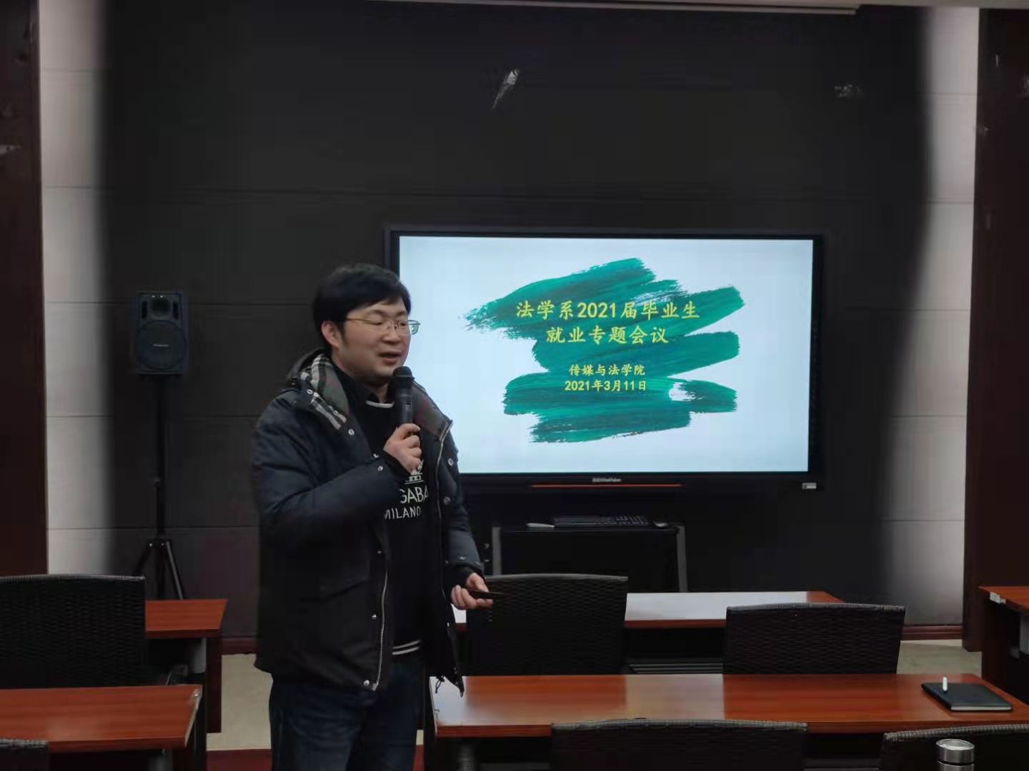 学院经过前期对2021届毕业生的排摸了解,为更好的进行2021届就业服务工作,以新闻传播系、法律系为单位,分别召开就业专题会议,会议由党委副书记胡鹿鸣主持。在新闻传播系专题会议上,系主任陈雪军老师鼓励论文指导老师在论文指导过程中多关心学生的就业情况,利用好老师资源给与学生精细的分类指导。党委书记胡鹿鸣对去年学院各专业的就业情况以及2021届现有毕业生的就业意向进行分析,给与政策上的解读和指导。各位专业老师也献计献策,力争做好毕业生就业指导工作;在法律系专题会议中,校启新特聘教授金彭年老师给全体专业教师分享他多年来从事法学专业就业指导工作的经验。曲昊杨老师就学生签订就业协议等实务问题进行说明。学院党委书记朱小红在两场会议最后都进行了总结,朱老师就老师们提出的疑问进行解答,并号召全体教师齐心协力做好学院的毕业、就业工作。