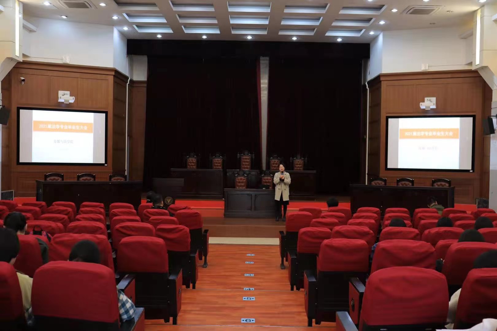 2021年3月27日下午,9778818威尼斯分别在模拟法庭、SB102举行2021届毕业生毕业、就业专题会议。学院副院长韩缨、党委副书记胡鹿鸣、新闻传播系副主任胡晓梅、思政主管赵红、思政副主管曲昊杨、思政辅导员李倩倩以及全体2021届毕业生返校参与了此次会议。