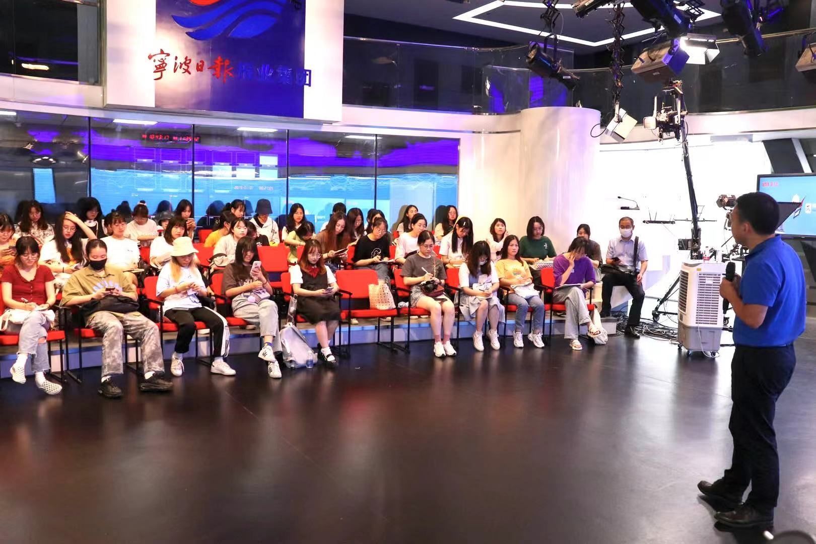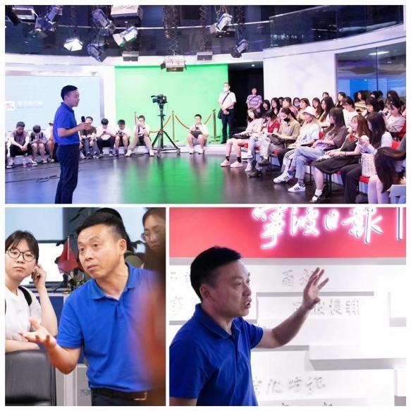 甬派客户端副总编辑、宁波日报报网甬派编辑部主任吴华清全程为师生做讲解。当天上午,吴华清在宁波传媒大厦大厅对青年学子们的到来表示欢迎。他简要介绍了宁波日报社复刊41年来的发展历程,他的介绍让同学们对接下来的行程充满期待。
