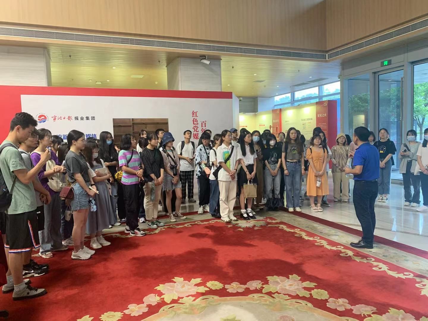 6月26日上午,9778818威尼斯张文祥教授带领我院新闻19级72名同学来到宁波日报报业集团,分别参观了宁波日报报业集团报史馆、甬派客户端编辑部和宁波城市大脑,就媒体融合、打造新型主流媒体、智慧城市建设等前沿问题进行了深入学习和交流。