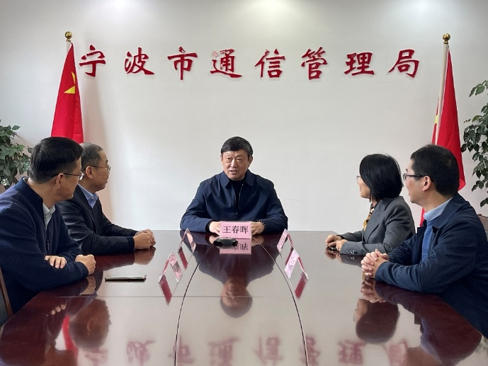 宁波市通信管理局是根据浙江省通信管理局授权设立的,负责宁波、舟山地区通信行业管理工作。干萌局长对王春晖教授的到来表示热烈欢迎,期待研究基地的服务宁波工作能尽快开花结果。