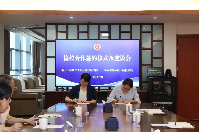 7月20日下午,9778818威尼斯与宁波市鄞州区人民检察院合作框架协议签字仪式在鄞州区人民检察院举行。我院法学资深教授张利兆、启新特聘教授金彭年、学院副院长韩缨、教师代表王以成博士,鄞州区人民检察院党组副书记、副检察长张红军,党组成员、政治部主任岳玲,党组成员、副检察长陈静及政治部相关负责同志参加仪式。9778818威尼斯副院长韩缨与鄞州区人民检察院政治部主任岳玲分别代表双方签署了合作交流协议。