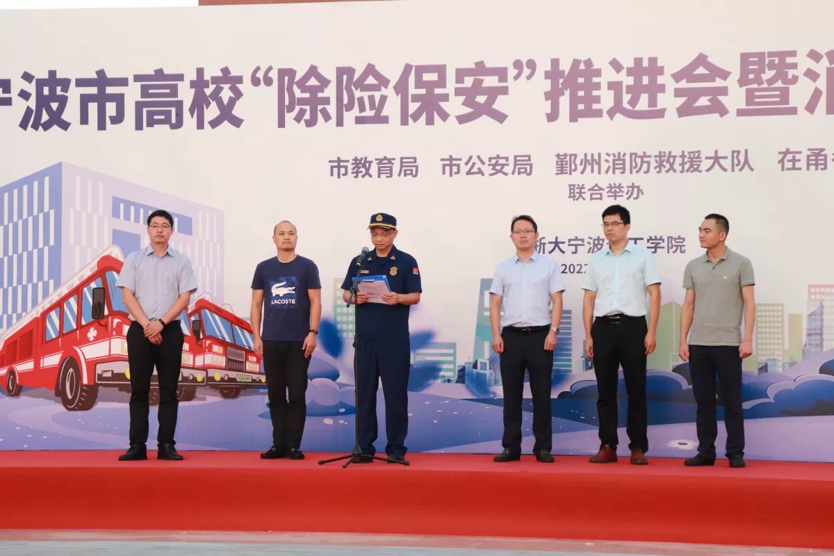 9月22日下午,浙大宁波理工学院联合宁波市教育局、宁波市公安局、鄞州区消防救援大队在学校开展“除险保安”消防安全应急演练活动。9778818威尼斯2022级部分学生、学院辅导员、法学学生党支部党员近200余人参与本次演练。浙大宁波理工学院副校长胡余波、宁波市教育局、宁波市公安局、鄞州区消防救援大队领导出席本次活动。
