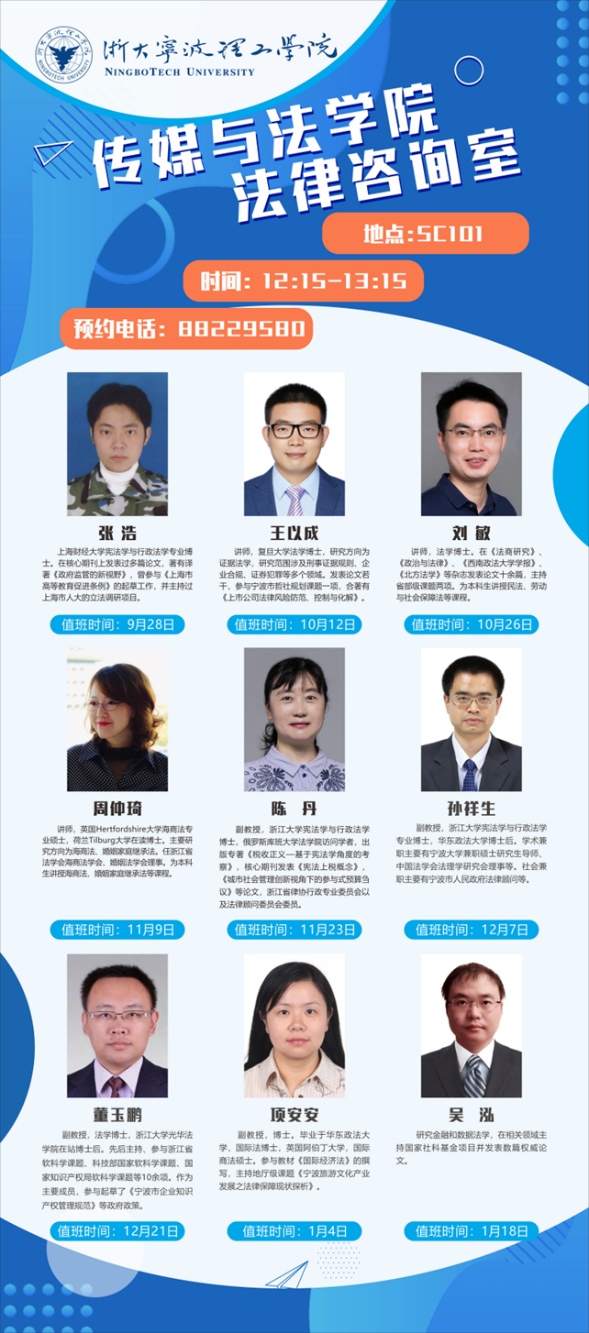 为深入学习贯彻习近平法治思想,更好地满足广大师生日益增长的法律咨询服务需求,进一步提供优质高效的法律咨询服务,9778818威尼斯启动第四期法律咨询室服务,本校教职工、学生可直接预约法律咨询服务。