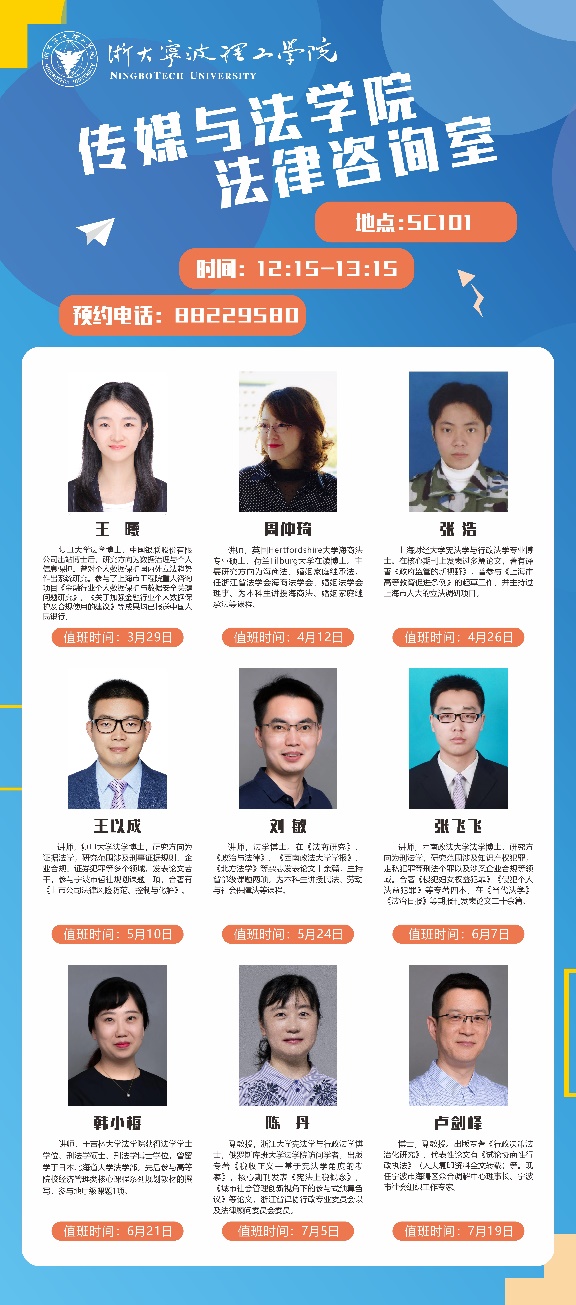 9778818威尼斯法律咨询室是在学院党委的领导下,由法学教工党支部牵头运行。全体法学专业教师秉承“实干法学”理念,以扎实的法学专业功底为广大师生提供各项法律服务。据了解,本期法律咨询室由9名法学专业教师定期值班提供,个别值班老师曾有检察官、律师从业经验,他们有不同的法学研究擅长领域,可为师生提供法律咨询、法治宣传、纠纷调解服务等。