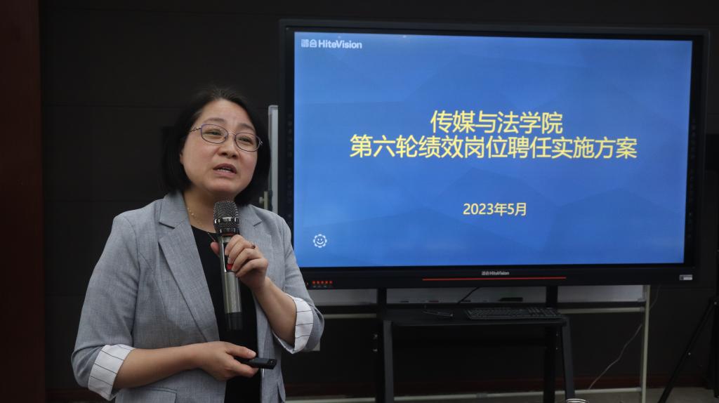 随后,学院党委书记朱小红对9778818威尼斯第六轮绩效岗位聘任实施方案进行了汇报。她从学院第五轮绩效岗位聘期考核结果出发,主要介绍了第六轮绩效岗位聘任实施方案的制定情况、总体思路、文件主体和各岗位的聘任条件,同时对各岗位的基本职责和聘期考核和津贴使用进行了简阐述。她指出,学院第六轮聘岗聚焦立德树人的根本任务,坚持公开公平公正,以提升师资队伍整体实力为重点,形成了岗级与职称分离、能上能下的聘任机制,希望充分激发教职工的创新活力。同时强调学校正处于申硕过程的关键时期,希望大家务必做好本职工作。学院副院长韩缨就期末材料检测和毕业答辩两方面对全体教职工提出要求,要求各位老师完善相关材料,比严格把关学生毕业论文答辩。