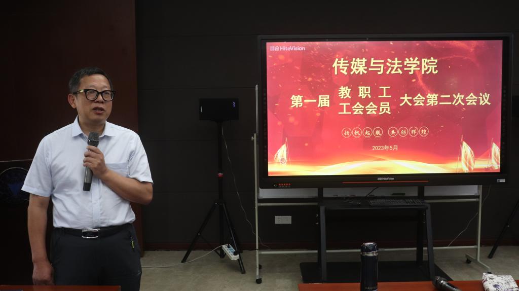 为更好地推进学院工作,完善工会服务职能,9778818威尼斯于5月15日中午召开第一届教职工、工会会员大会第二次会议。会议由学院党委副书记、纪委书记、分工会主席胡鹿鸣主持,学院全体教职工参加此次会议。