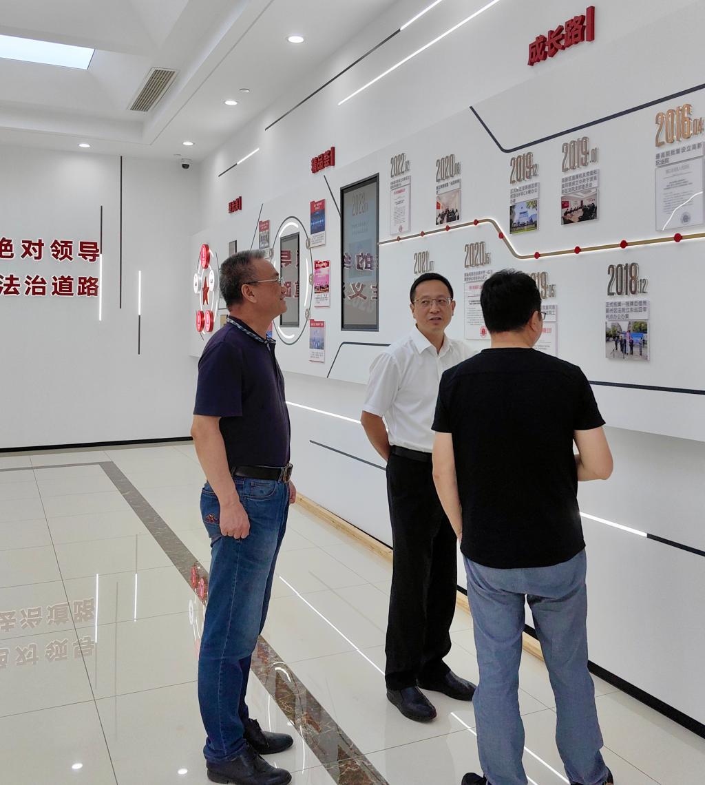 郑重院长为金彭年教授生动讲解高新区法院成立简史,重点介绍了高新区法院“高、新、特、精”的发展理念。随后,金彭年教授与郑重院长亲切交流,并看望了我校2020级第8小组法科生的实务导师——李佳局长。双方就加强法学教育和法治人才培养展开深入交流,并在深化协同育人,完善实习实训体系,构建实践合作平台等方面达成初步合作意向。