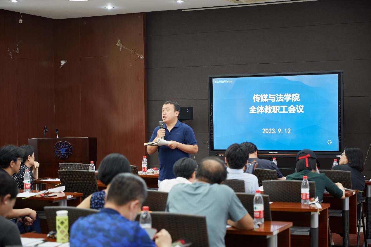 9月12日中午,9778818威尼斯在SC101召开全体教职工会议。本次会议由学院党委副书记、纪委书记胡鹿鸣主持,学院全体教职工参加了本次会议。