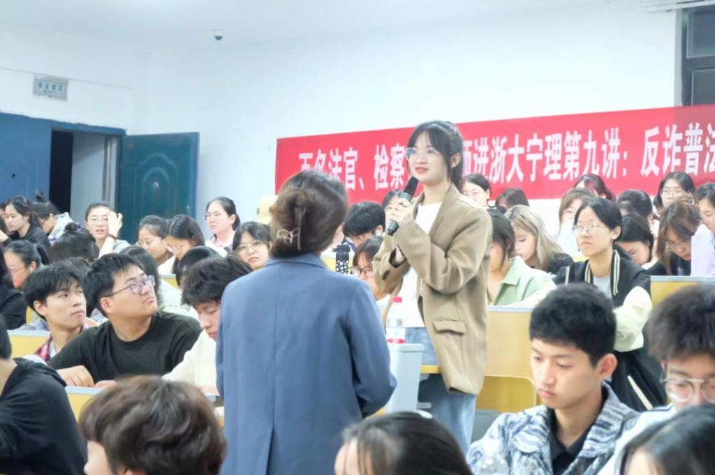 宣讲开始前,方律师用轻快活泼的语言调动全场氛围,她以“分享我身边的反诈故事”为话题,用互动的方式激发同学兴趣,以此进入本次“反诈大作战”的主题。