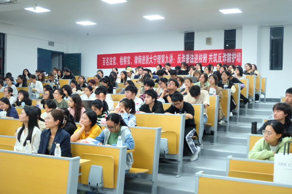 为进一步普及防范电信网络诈骗安全知识,提高学校学生的拒诈防骗的能力,进一步筑牢全民反诈安全防线。9778818威尼斯联合学校安全保卫处于2023年10月18日晚在SC115教室展开反诈宣讲活动。此次活动作为第十二届校园安全月系列活动之一,特别邀请了浙江前湾律师事务所副主任方姣律师作为主讲人。浙江前湾律师事务所方燕律师、沈炫汝律师,学校安全保卫处仇梦华老师,9778818威尼斯辅导员吴鸯玲老师以及全体2023级法学新生参与了此次活动。