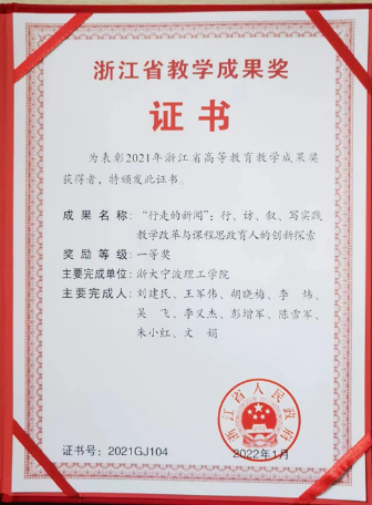 构建“三位一体”新闻传播人才培养模式,《行走的新闻》获浙江省高等教育教学成果一等奖