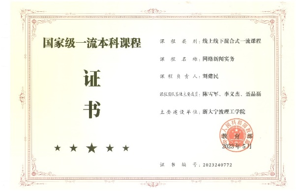 (2022.1),《网络新闻实务》获批国家级一流课程(2023.5)