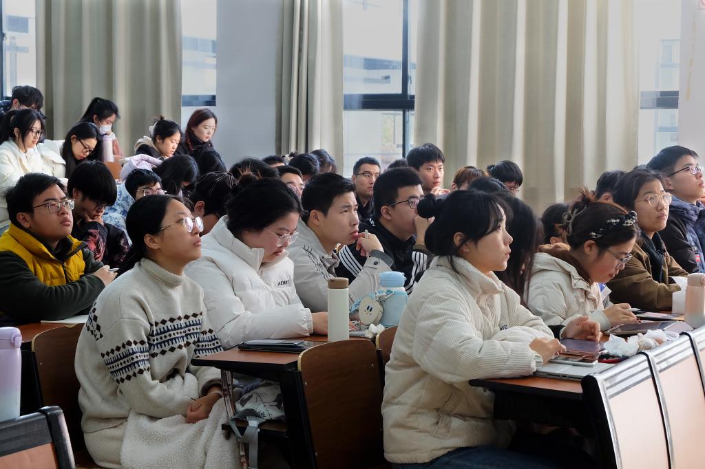 讲课开始前,金彭年教授与在场师生积极互动,气氛活跃。金教授劝诫同学们仔细听讲,积极发言,课后可以主动向实务导师请教,以及与身边的同学进行交流互鉴,通过学习同辈的优秀之处来提升自己。