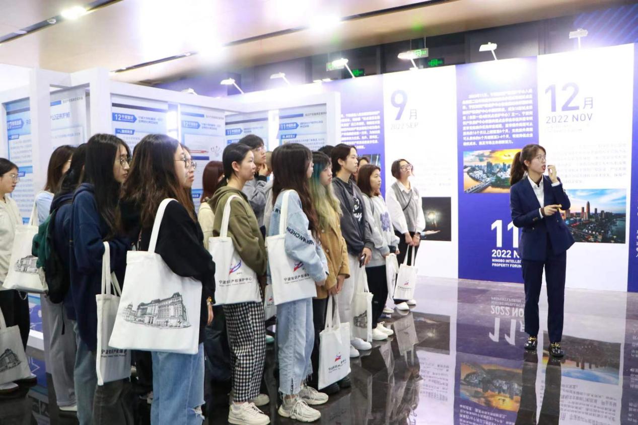 随后,讲解员通过介绍《跨国商业秘密应对战:成功之路揭秘》等多个知识产权相关的典型案例,向同学们解说知识产权保护和增强全社会尊重和保护知识产权的意识的重要性和必要性。并介绍了具有专家解惑、你点我讲、商标预警、品牌体验四大特色服务的宁波品牌指导服务站。