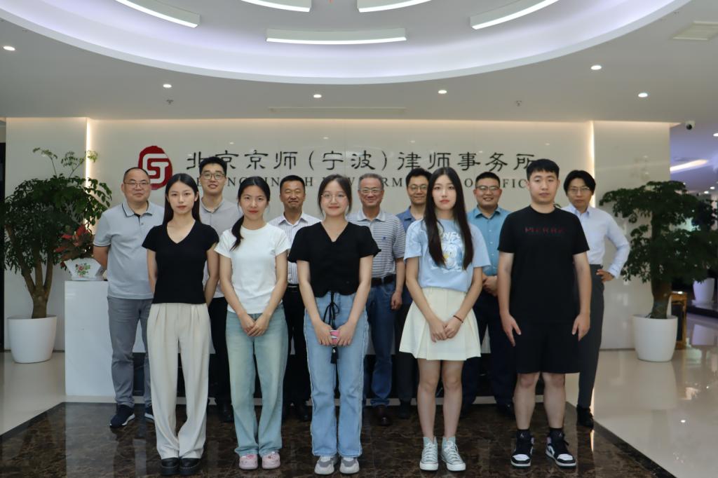 为促进校所协同育人,增进交流合作,6月12日,浙大宁波理工学院启新特聘教授金彭年、我院青年教师代表王以成博士、张飞飞博士、张浩博士、王唯斯博士以及涉外法治卓越人才班学生代表周煦杰、崔涵婧、吴泱然等一同走进北京京师(宁波)律师事务所开展学习交流活动。