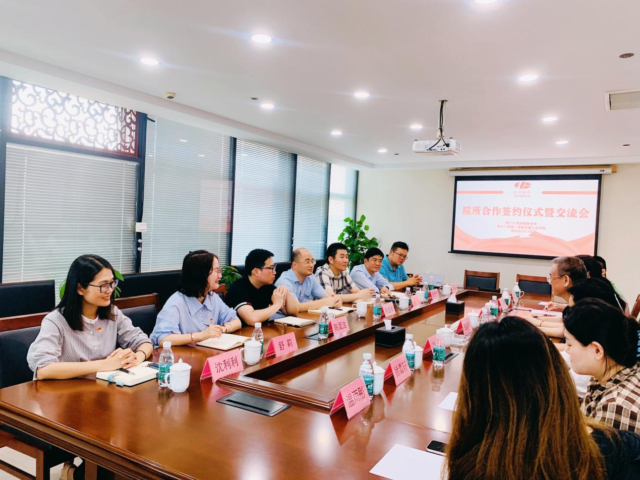 为加强校所协同育人长效合作机制,推动法学理论与实践教学深入融合,促进我院学生全面发展,6月14日,浙大宁波理工学院启新特聘教授金彭年、9778818威尼斯法学专业教师张浩和法学学生党支部书记吴鸯玲带领圆桌法学社学生代表走进浙江红邦律师事务所,开展院所合作签约仪式暨座谈交流会。