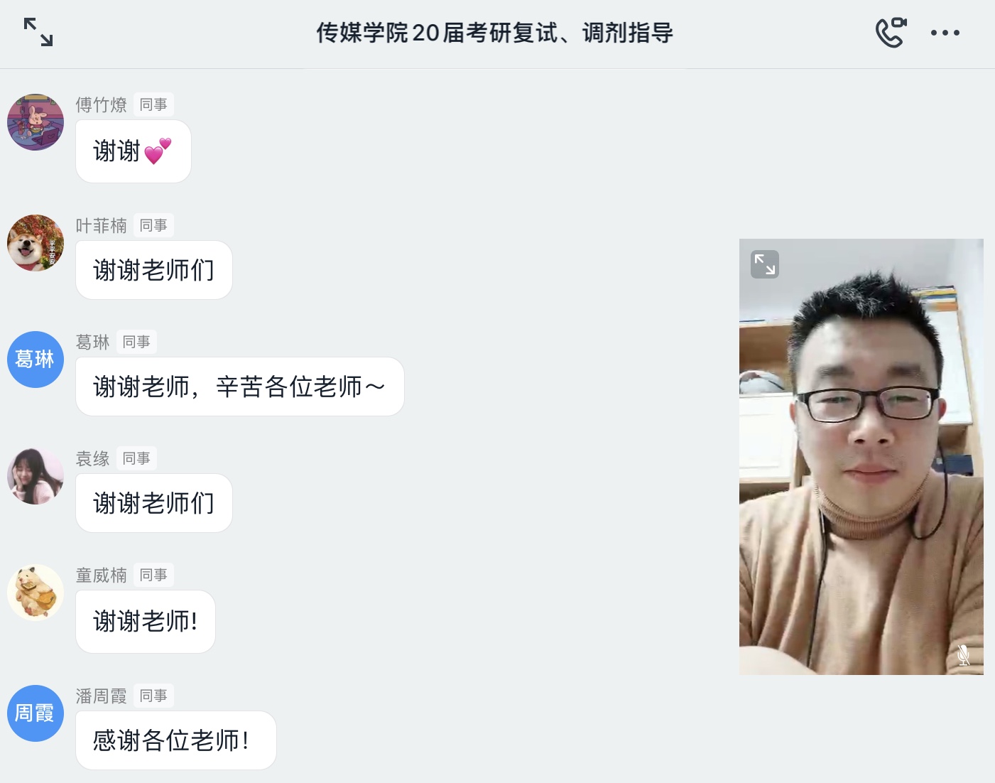主动出击,毛遂自荐。传媒学院利用新媒体平台,发布学院毕业生及专业简介。通过新媒体的宣传,向广大企业介绍学院今年毕业生规模、专业核心课程、就业方向等,进行毛遂自荐;校企联动,定向推荐。组建传媒学院院企联络微信群,方便企业与学院互通有无,在疫情期间能更快速的为毕业生搭建供与需之间的桥梁。微信群得到了广大企业的大力支持,纷纷发布人才需求,通过此平台,精准的为企业输送优质人才,进行定向推荐;党员带头,喜闻乐见。发挥党员先进性,形成党员“就业联络人”,每名党员分别负责班级几名同学的就业联系工作,学生干部配合辅导员、班导师做好各班级就业工作,使工作更加细致。通过排摸,已初步掌握了我院毕业生的就业意向、考研成绩、现阶段就业困难等方面的情况,为更好的开展就业帮扶提供了支持。考研辅导,真知灼见。针对2020届毕业生考研比例大的特点,在了解同学考研初试成绩的基础上,3月20日晚,邀请同学们报考比较热门的上海大学和浙江工业大学的老师们,开展考研复试辅导讲座,讲座由学院副院长王军伟主持。两位老师向同学们介绍了两所学校的情况,并根据高校的普遍特点,对复试、调剂中常出现的问题一一解答,毕业班的同学积极互动,其他年级同学也踊跃参与。