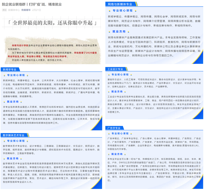 受到新冠疫情影响,如何更好的做好2020届毕业生的就业指导工作,传媒学院多“荐”齐发,通过多种形式和渠道帮助2020届毕业生精准就业。