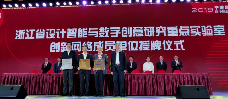 开幕式上,杨灿军副院长代表学校,作为第一批浙江省设计智能与数字创意研究重点实验室创新网络成员单位之一,接受潘云鹤院士的授牌。