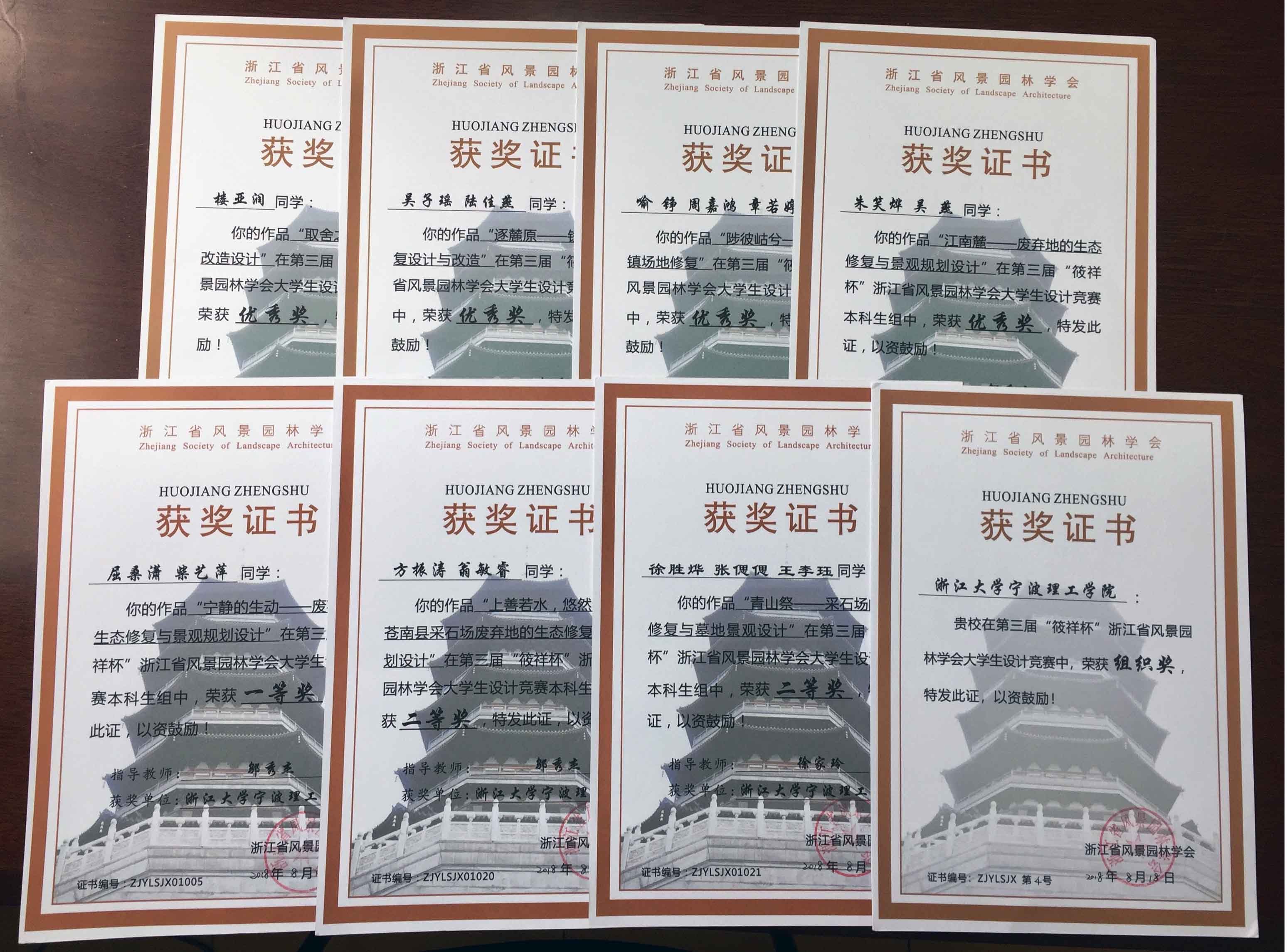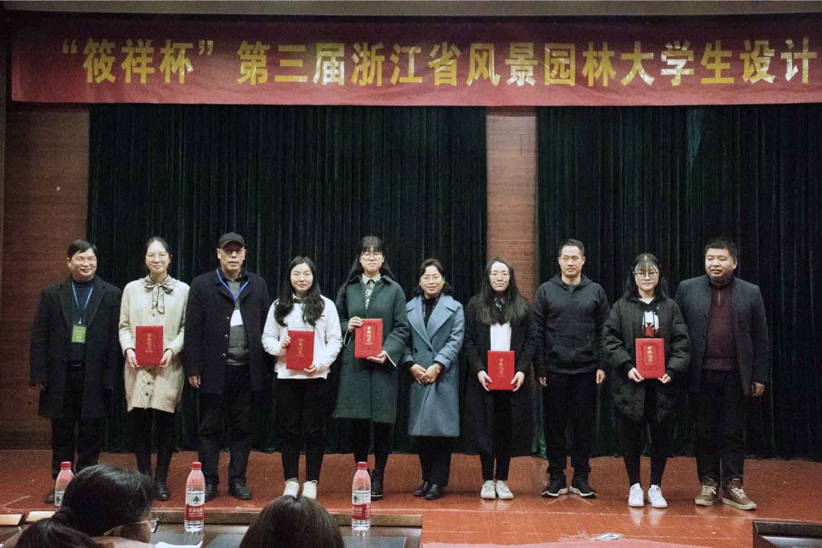 2018年12月,第三届“筱祥杯”浙江省风景园林学会大学生设计竞赛传来喜讯:我校环境设计专业学子在该比赛中获得一等奖。该比赛由浙江省风景园林学会主办,浙江大学园林研究所承办。竞赛颁奖仪式于12月22日在浙江大学紫金港校区农业与生物技术学院举行。我校传媒学院姚佳老师作为教师代表,与获奖学生代表方振涛和朱家纯共同出席本次颁奖仪式。