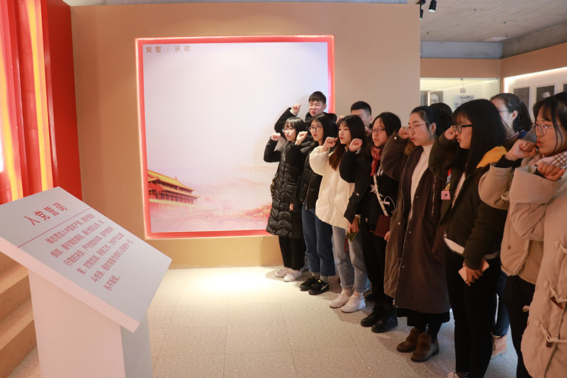 活动的最后,任凯老师带领学生党员对着党旗庄严宣誓,重温入党誓词,表达了自己成为一名优秀的、为人民服务的共产党员的坚定决心。