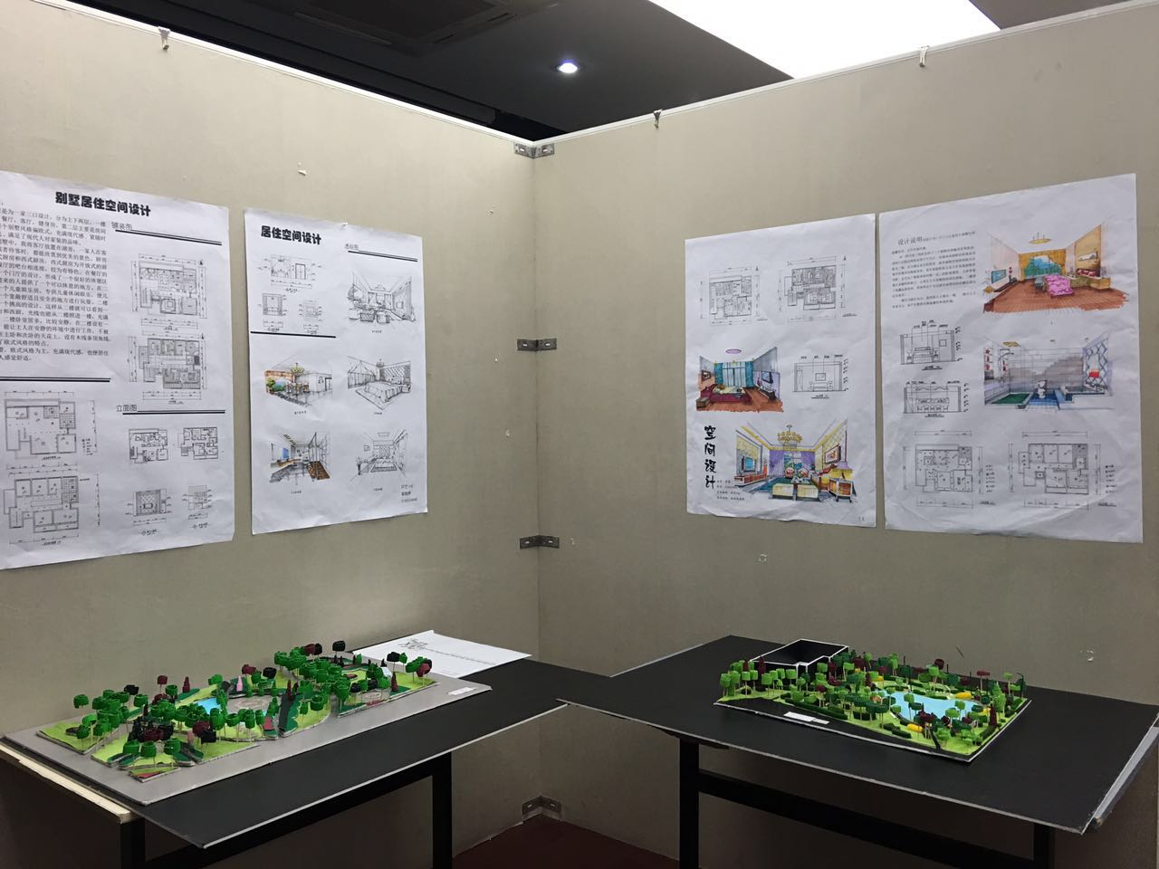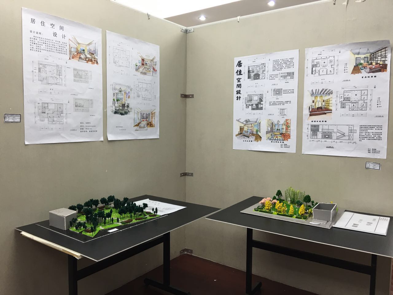 本次展览的设计作品包括两个部分:一部分是是室内设计作品,以家居设计为主题,为一套别墅进行室内设计;另一部分景观设计作品,以校园为主题,主要选择的“竺园”或“随园”为主要设计场所进行改造设计。两门课程的题材都是学生较为熟悉的内容,便于设计工作开展。室内设计作品以展板形式展示,景观设计作品以模型和A3图册为主。