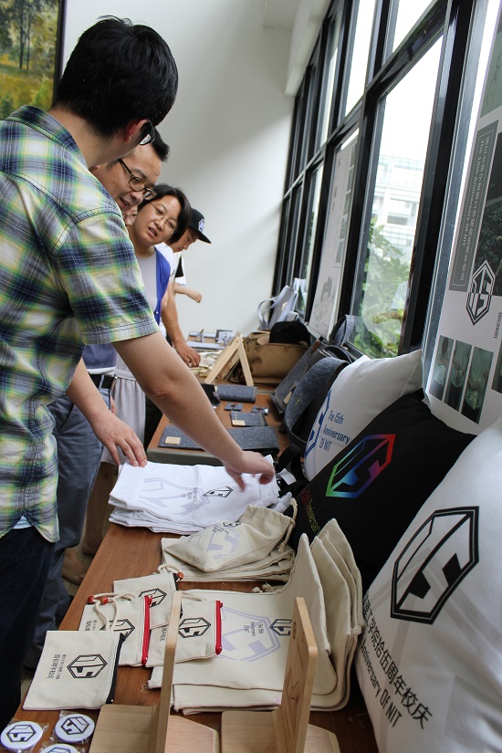 本次课程作业展的指导老师为传媒学院工业设计专业张峰、张宇泓老师,据张峰老师介绍,本次展出共15组作品,包括T恤衫,抱枕,雨伞,帽子,书签,书夹,各类文具包,电脑包等日常用品,作品既有实用功能,又融入了校训、校名、学校主要建筑等元素,设计风格分为潮流个性风、清新婉约风等几个系列。