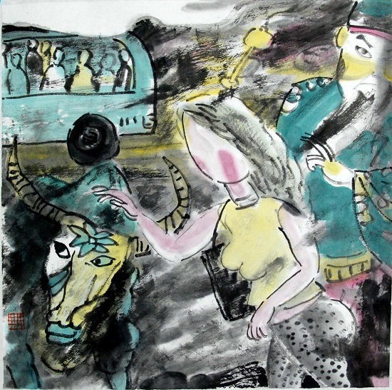 作品介绍:“移位”是一种视点的移动,观看对象的改变;“风景”一是指自然风景,一是指人、事、物。这里更多的是隐喻人被移位后的状态。《移位的风景之二》、《移位的风景之五》两幅作品,人物是意向造型,我们看到几个不同时空的人、物、景组合在一起,带着时间的错位感和陌生的片段感,有似某种梦境,处理上是跳跃、零散乃至荒诞的,大概呈现了世界表象背后的某种真实,也颇有表现主义的绘画意味。