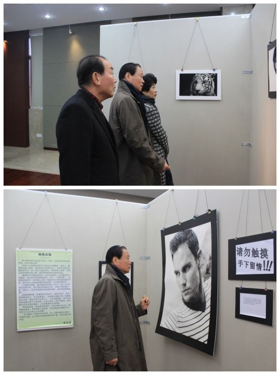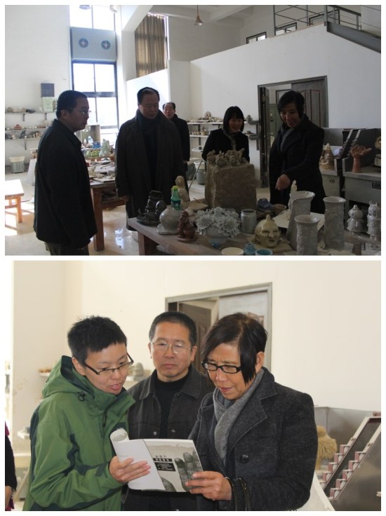 来宾一行参观了SC一楼的展览室,本次展览“绘事后素”为数字媒体122班傅质璁学生的个人作品专场,裵先生等人认真听取了学生本人的创作想法,对学生作品表示高度赞扬。随后来宾前往陶艺实验室进行参观,详细了解实验室设备配备并参观学生作品。最后,由旭声教授向每位来宾赠送个人画册《由旭声铜版画集》。