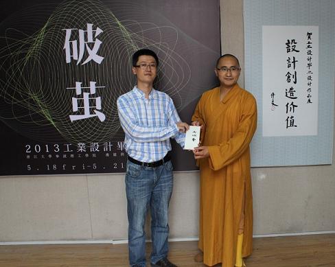 5月29日,浙江大学宁波理工学院传媒与设计学院迎来了一位特殊客人。宁波七塔禅寺副寺法净法师专程到访我院参观工业设计专业毕业生作品展。宁波江东区政协特邀委员、传媒与设计学院副院长何镇飚教授,工业设计研究所所长赵建国副教授负责接待并赠送学生作品。