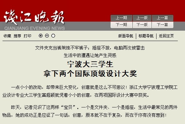 【钱江晚报】宁波大三学生拿下两个国际顶级设计大奖