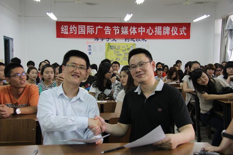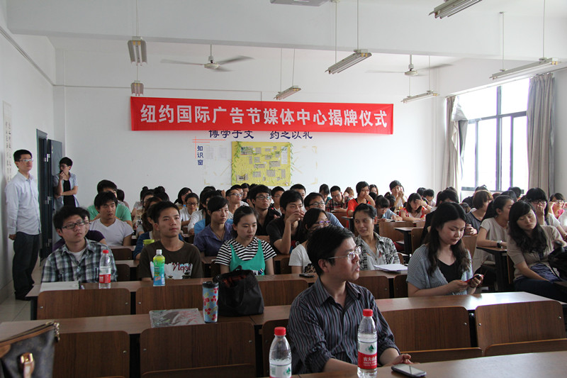 6月5日下午,纽约国际广告节媒体中心揭牌仪式在我校举行,副校长郑堤教授出席仪式并致辞,传媒与设计学院广告与创意产业研究所副所长陈雪军、所长助理徐静及广告学、艺术设计、工业设计专业教师、学生代表与社会人士共100余人参加了仪式,仪式由传媒与设计学院院长助理何镇飚教授主持。