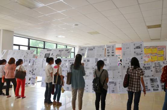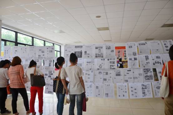 早上7点半,记者来到报展现场SC大厅的时候,现场已经相当热闹,去上课的同学们纷纷停下自己的脚步观看新闻专业同学们的作品,并不时的小声评论着。