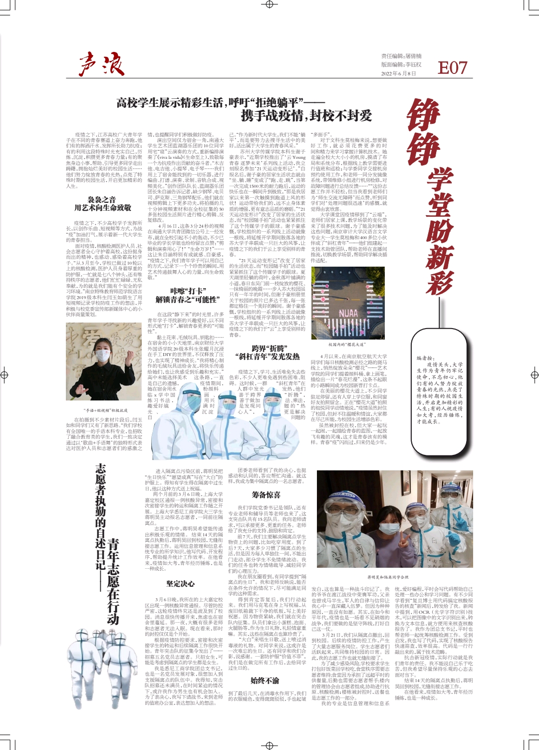 《闻新驿》是新闻学201班的44名同学从疫情的视角出发制作的民生之窗、浙里战疫、文娱之声和最美课堂特辑。他们特别希望通过编辑《闻新驿》这一报纸让大家清楚看见疫情下的方方面面,引发大家的思考。