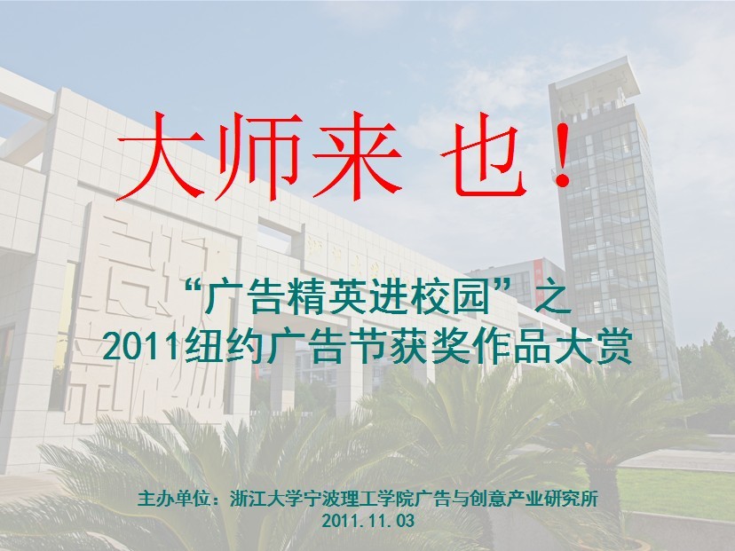讲座主题: 品鉴2011纽约广告节获奖作品