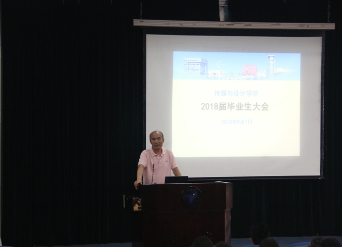 6月1日上午九点,传媒与设计学院2018届毕业生大会在NF103顺利开展。出席本次大会的领导和老师有学院党总支副书记朱小红老师、学院副院长刘建民老师、学院学工办教务办老师、2018届毕业班班导师、2018届全体毕业生,特别邀请了学校保卫处副处长叶卫树老师为毕业生作安全教育。本次大会由思政主管任凯老师主持。