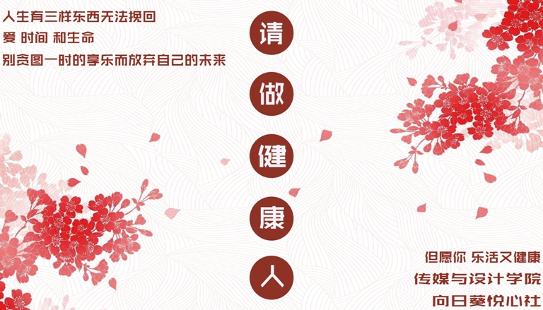 12月9日,传媒与设计学院向日葵悦心社发起了“拒绝网瘾与熬夜,争做健康新青年”的寝室门贴征集活动。截至到12月14日,共收到67份作品。经过海选、网络投票以及老师打分的环节,门贴征集的结果在12月21日火热出炉。同学们在本次活动中大显身手,各种创意层出不穷,设计的作品都新意满满。其中有十五位同学凭借自身优秀的作品分获本次活动的一二三等奖。