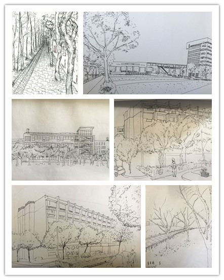 此活动得到同学们的热烈响应,不少同学将自己的最喜欢的理工一角绘画作品发过来。最多的作品是对图书馆的描绘勾勒,有的三两笔,有的工工整整,也有的选择追求意境。还有同学画石麟与可珍,以及通往随园的小树林。哪怕只草草几笔,也能让人一眼就能认出来这是我们理工的一角。每个人对眼前的景象都有不同的认知与看法,尽管是同一个图书馆,同一个视角,在同学们的笔下也是各有特色、各不相同。