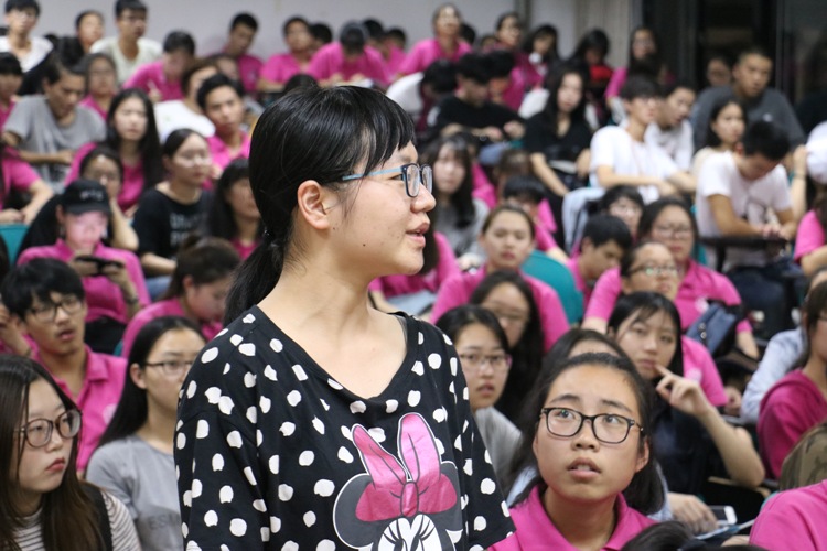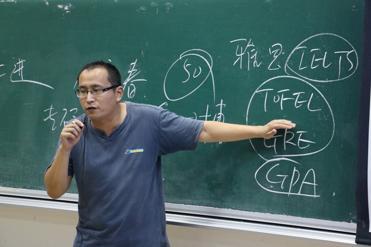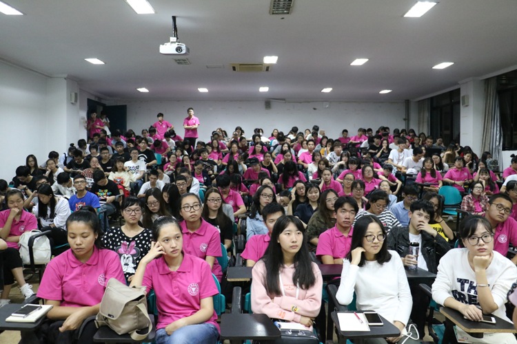 接着,幽默风趣的郭晶老师讲述了自己在中国人民大学求学以及去日本读博的典型经历。他还对考研费用及雅思托福成绩需求等进行了补充,鼓励同学们积极申请境外、海外学校,重点讲述了香港学校考研政策及日常开销等方面。同时,两位老师还讲述了社会经历的必要性,点明了国际志愿者协会活动的重要性。这些话点燃了在场所有拥有考研出国梦想的同学的热情。