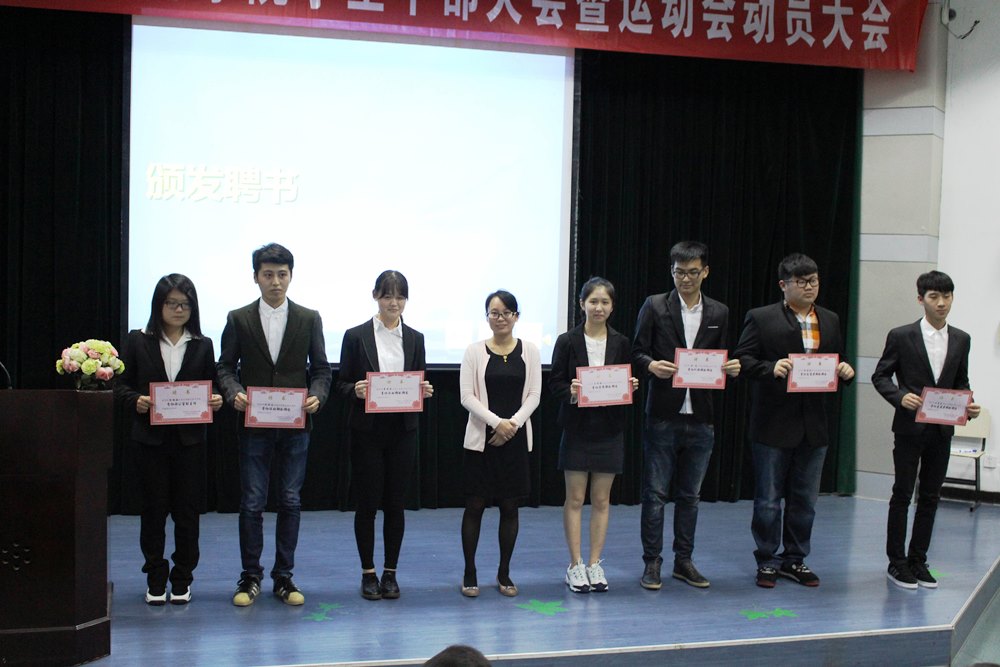 学生干部大会上,任凯老师宣读了学生干部任命名单并发言。向全体学生干部提出了三点建议:一加入学生组织不是为了锻炼,而是为了提升;二做人做事要认真;三做事的标准是快、好、又快又好,任凯老师的讲话为全体成员明确了学习目标。紧接着由老师们为团学社青艺的新一届学生干部分别颁发了聘书并合影留念。之后,前社联主席余丽美、前艺术团团长池一凡、新一届干部代表青协主席陈帅、艺术团办公室主任常皓天上台发言。他们提出“大学要明确自己的目标。不要虚度光阴。遇事要沉着冷静。”等意见,给大一新生们树立了学习的榜样。