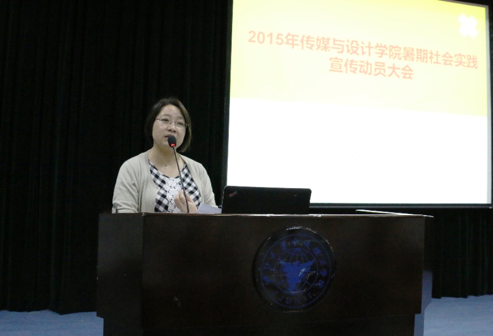 5月8日晚6点30分,2015年传媒与设计学院暑期社会实践宣传动员大会于NF103举办。莅临本次会议的有党总支副书记朱小红老师,思政主管任凯老师,全体辅导员以及14级传媒学生。