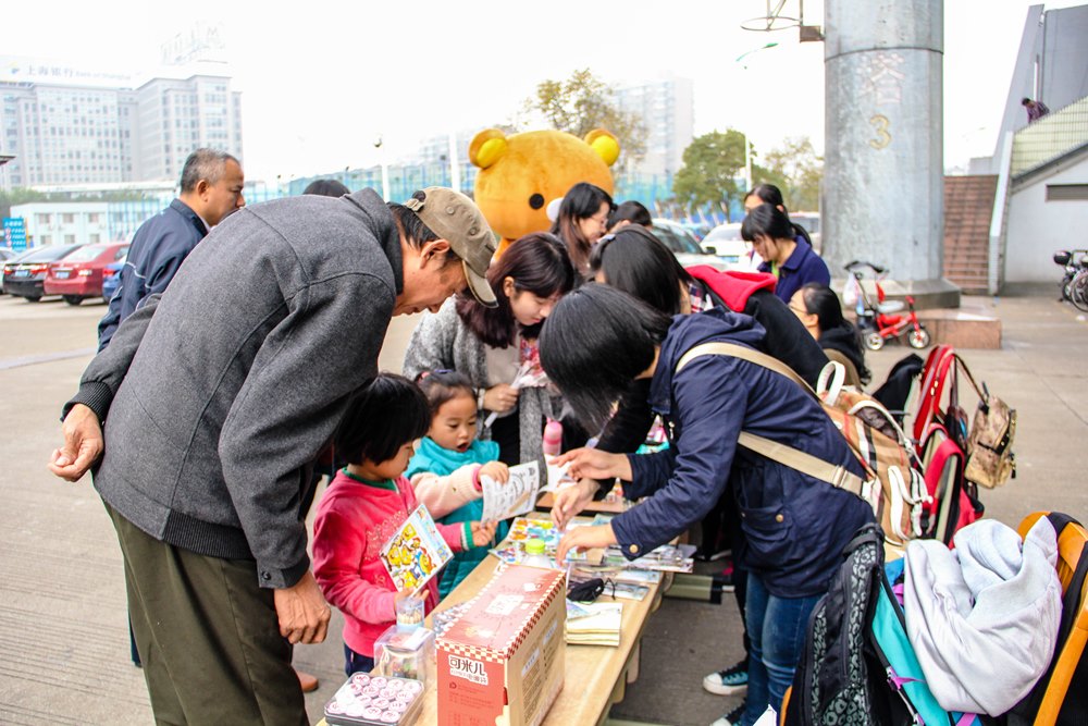 志愿者们早早来到江东区图书馆,为即将开始的爱心义卖做准备。活动现场,志愿者“请”来了一只可爱的“小熊”,吸引孩子们的注意。上午九时许,就不断有小朋友和家长过来询问和了解活动。当得知这次活动是为石家村的留守儿童与孤寡老人捐献爱心时,他们更是表现出了极大的热情。有小朋友用零花钱买到了自己喜爱的文具,献上自己小小的爱心,也有小朋友因自己未带钱而表示相当遗憾。同时,志愿者们对每一个奉献爱心的市民表示感谢。