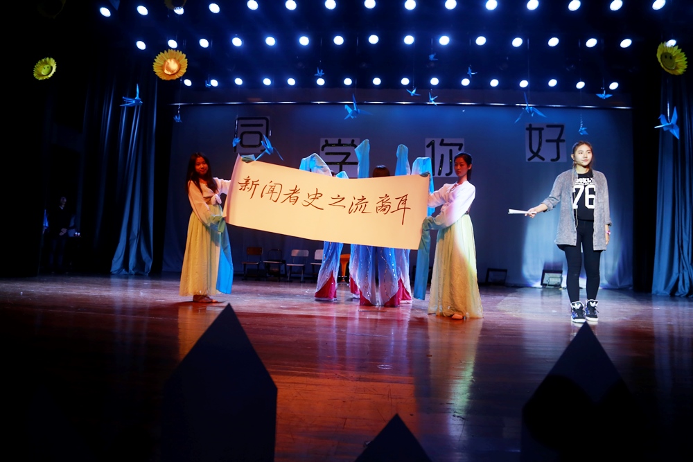 随后,传媒与设计学院的各班级上台进行了表演。其中,环艺142班的小品《应聘风波》首先登场亮相。接着,新闻142班的舞台剧《时代》发出了新闻人的呐喊:“新闻者史之流裔耳”,彰显的新闻人的担当与责任。广告141班的舞台剧《NIT大广赛决赛》邀请了聂晶磊老师表演颁奖嘉宾,妙趣横生。工业141班的《Mr.Right》在一片黑暗中进行了一场荧光舞,引发全场惊呼与掌声,将晚会推向了高潮。中场时,院舞蹈队的《激战》帅气火热,也是掌声连连。诗朗诵《雪落在中国的土地上》展示了对于祖国的热情。晚会以话剧队的《梦想与现实》为压轴,演绎了现实与梦想的差距,激励同学们脚踏实地,努力向上。
