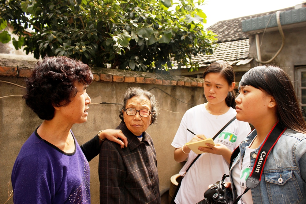 上午八点,志愿者们坐车前往石家村。在村支书的帮助下,志愿者们有序为村民拍摄全家福。学生志愿者按计划分为八组,每组两人,一名拍照,一名负责记录相片的编号,拍摄对象的姓名,联系方式和住址。活动开始后,志愿者们分头行动,与村民的简单交流并获得他们的拍摄许可。获得同意后,志愿者进入村民家中为村民拍照,记录员准确真实记录相关内容并向村民说明照片的用途。