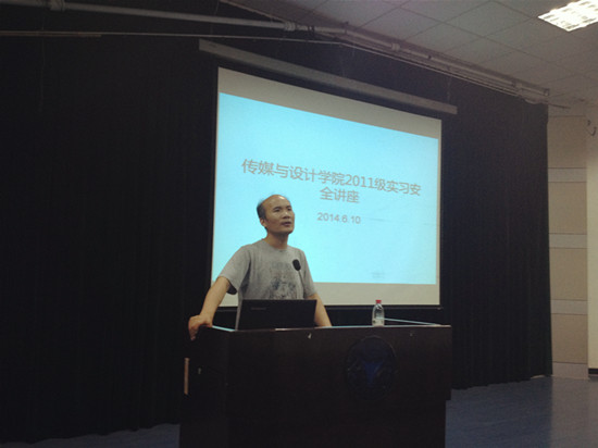 为了有效促进2011级专业实习和就业实习能够顺利进行,切实做好各项安全工作,6月10日晚,传媒与设计学院在NF103召开2011级实习安全教育专题讲座,讲座邀请了学校保卫处副处长叶卫树老师主讲。