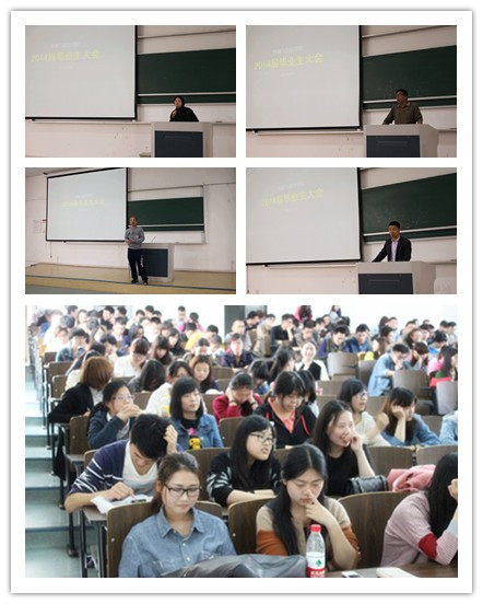 4月14日下午,传媒与设计学院在SB104召开了2014届毕业生大会。党总支副书记朱小红、副院长刘建民、校保卫处业务主管叶卫树、思政副主管任凯、辅导员赵红以及全体2014届毕业生参加了会议。