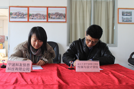 12月6日上午,传媒学院与宁波科友信息科技有限公司在学校SC301举行“大学生创新创业奖”签约仪式。